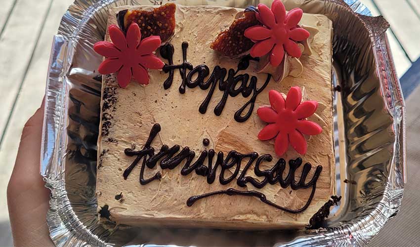 Enjoying another delish Anniversary cake!